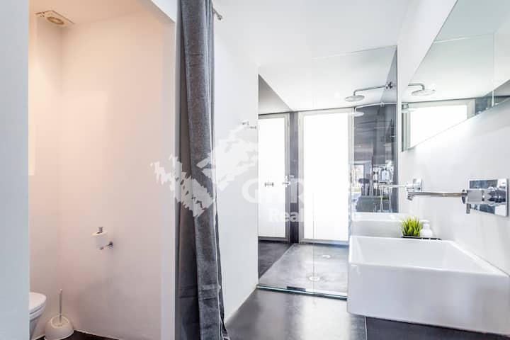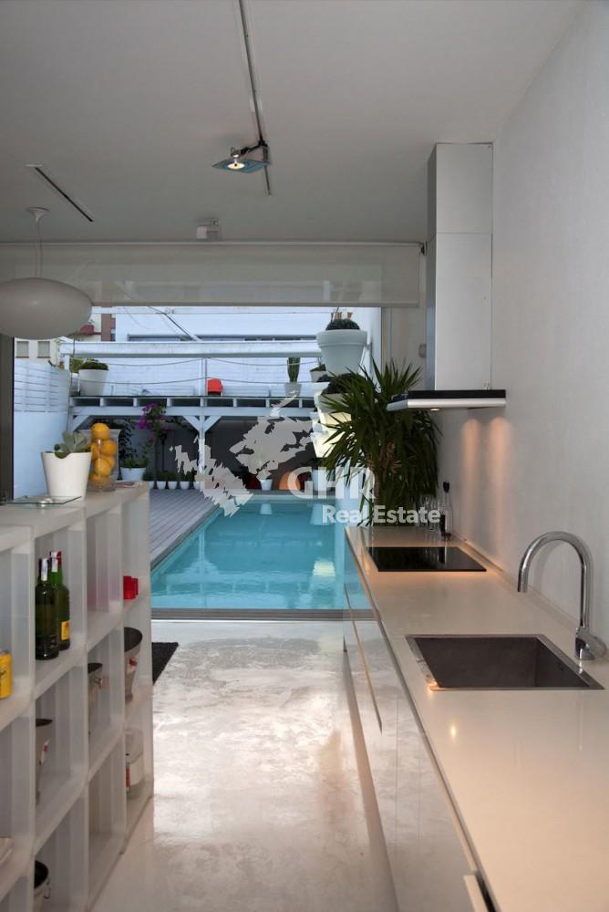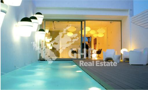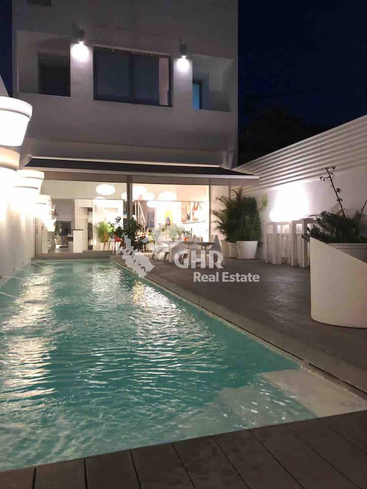 Первый этаж: гостиная с камином. Кухня и столовая с большим окном и видом на террасу и бассейн. Кондиционер. Установлен лифт. Пол с подогревом.