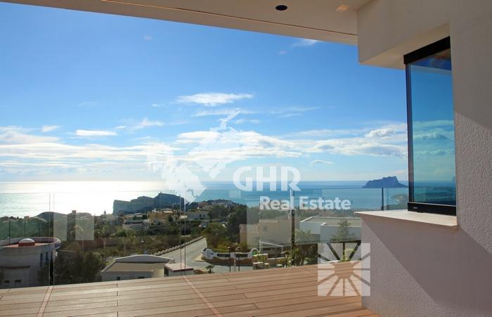 Новая вилла стиля модерн с панорамными видами на море. Расположена в элитной урбанизации Кумбре дель Соль.