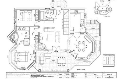 Верхний этаж имеет 2 спальни и 2 ванные комнаты, одна с джакузи и другая с душем с гидромассажем. На нижнем этаже находится кухня, гостиная и большая крытая терраса. На первом этаже на уровне с бассейном, есть и третья спальня с ванной комнатой, гостиной и игровой комнатой / тренажерный зал.