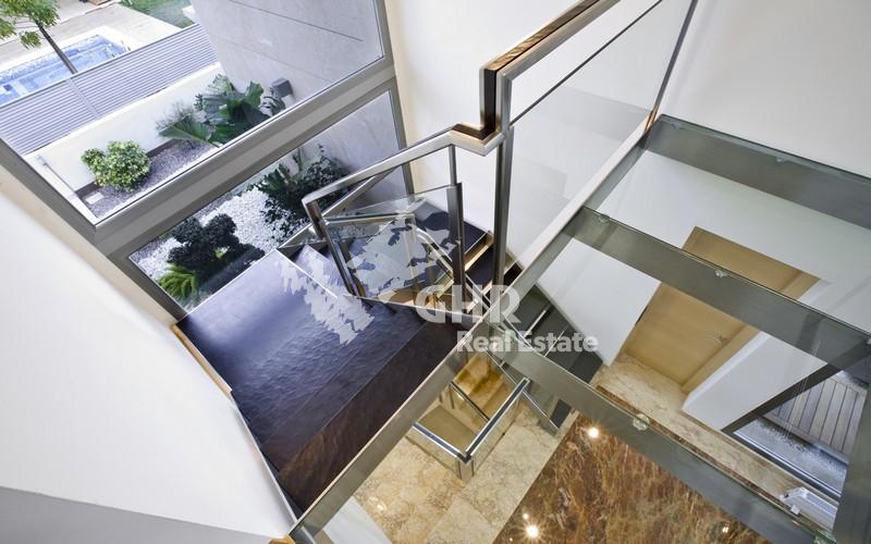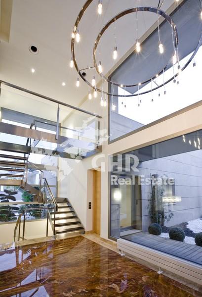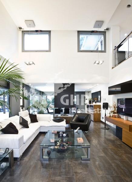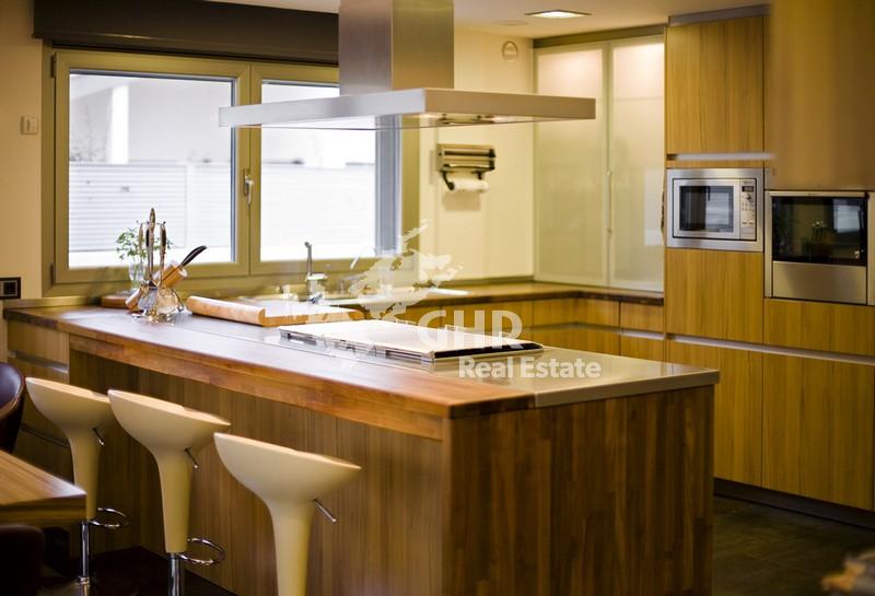 Центральное отопление водяными радиаторами по всему дому (разделены на 5 зон), солнечные батареи для горячей воды, кондиционер холод/тепло (разделен на 5 зон), аварийное освещение по всему дому, система "Умный дом", система видео наблюдения (21), с наблюдением с домашнего телевизора или из интернета (офис, поездка и т.д.)