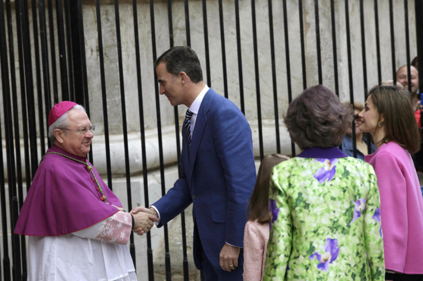 Король Испании Фелипе VI, королева Летисия, донья София, принцесса Элеонор и инфанту София прибыли в собор на автомобиле, которым управлял дон Фелипе. Король по прибытию приветствовал собравшихся местных жителей и сердечно поздоровался с епископом Майорки Хавьером Салинасом, который ожидал его перед храмом. Сотни людей приветствовали королевскую чету аплодисментами и делали фотографии на мобильные телефоны.