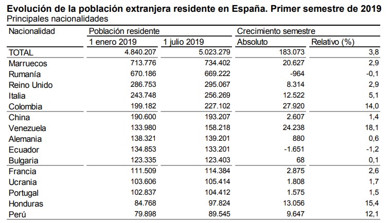 Количество иностранцев – резидентов, проживающих в Испании, увеличилось за полгода на 3,78%, достигнув величины 5.023.279 человек, что составляет 10,67% от общего числа населения страны.