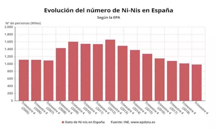 Число молодых людей Испании в возрасте от 16 до 29 лет, которые не учатся и не работают (так называемые «нини»), составило 982 900 человек на конец 2019 года. Национальный статистический институт (INE),предоставивший эти данные, подчеркнул, что количество «нини» уменьшилось до самого низкого показателя с 2005 года.