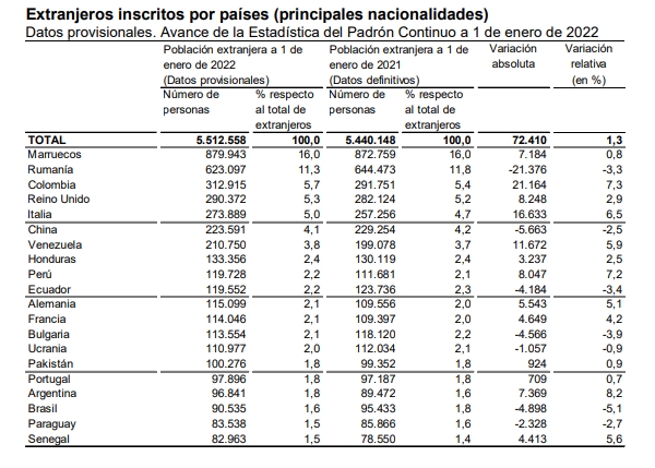 В абсолютном выражении граждане Колумбии, Италии и Венесуэлы показали самый большой прирост своего представительства в Испании за 2021 год на 21.164 чел., 16.663 чел. и 11.672 чел., соответственно.
