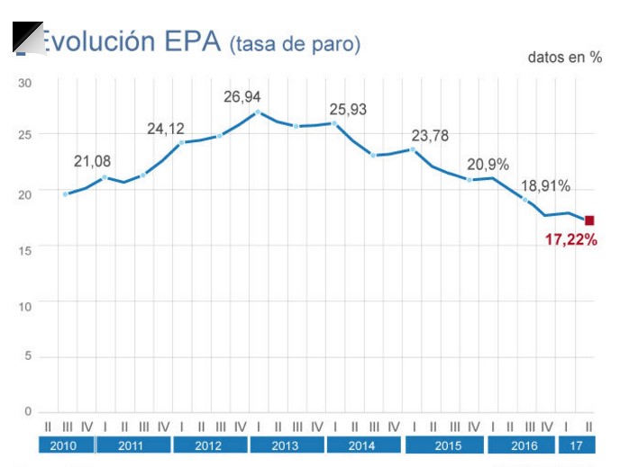 Рынок труда в Испании вновь демонстрирует обнадеживающие результаты, о чём свидетельствуют последние данные по безработице II квартала 2017 года, опубликованные Национальным институтом статистики (INE) согласно обследованию экономически активного населения (EPA).