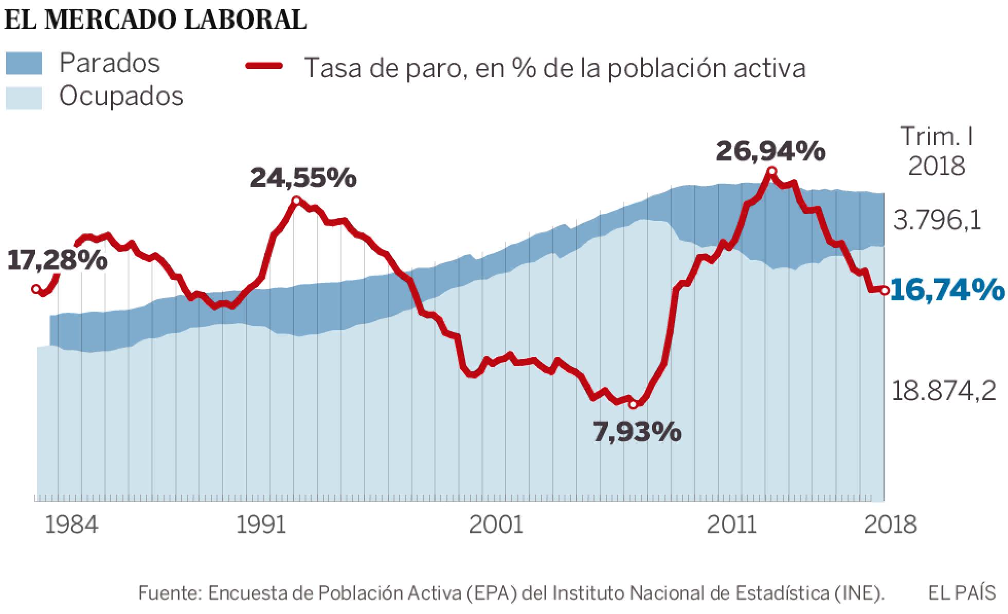 В первом квартале текущего года количество безработных в Испании увеличилось на 29.400 человек (0,78%) и составило в общей сложности 3.796.100 человек. Об этом свидетельствуют данные по безработице I квартала 2018 года, опубликованные сегодня Национальным институтом статистики (INE) согласно обследованию экономически активного населения (EPA).