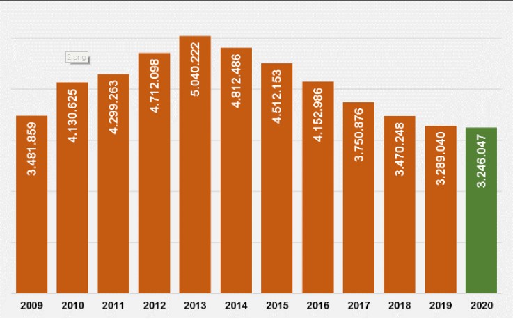По итогам февраля 2020 года число безработных, официально зарегистрированных в органах государственной службы занятости Испании, составило 3.246.047 человек (самый низкий показатель для этого месяца с 2008 года), что на 7.806 человек меньше, по сравнению с предыдущим месяцем.