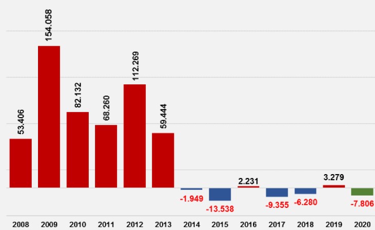 В рамках исторической серии, которая началась в 1996 году, безработица в феврале росла одиннадцать раз и снижалась - четырнадцать. За последние семь лет, помимо февраля этого года, снижение было зафиксировано в 2014 году (-1.949 безработных), 2015 году (-13.538 безработных), в 2017 году (-9.355 безработных) и 2018 году (-6.280 безработных). В промежутке между ними, в 2016 и 2019 годах, безработица увеличилась на 2.231 и 3.279 человек, соответственно.