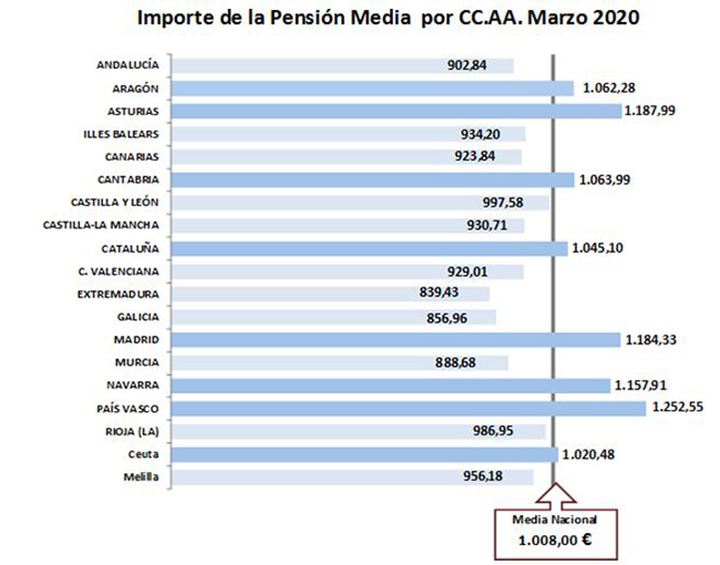 Средняя пенсия, которая включает в себя различные выплаты (по возрасту, с утратой трудоспособности, потерей кормильца и в пользу сирот и членов семьи) составила 1008 евро в месяц с годовым увеличением на 2,16%.