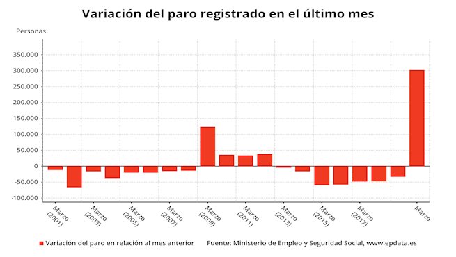 Мартовский рост безработицы текущего года является абсолютным рекордом для Испании, превышающий самый высокий до этого показатель января 2009 года, когда без работы остались почти 199 тысяч человек.