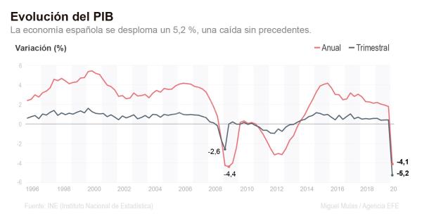 Указанное квартальное падение экономики стало крупнейшим в исторической серии, которое фиксируется INE, начиная с 1970 года. До этого наибольшее квартальное падение ВВП было в первом квартале 2009 года (-2,6%).