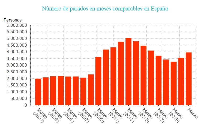 Министерство труда и социальной экономики Испании, опубликовавшее сегодня эти данные, отмечает, что мартовское снижение числа безработных текущего года положило конец пятимесячному непрерывному росту числа нетрудоустроенных и является третьим по величине в истории, а также максимальным для этого месяца с 2015 года.