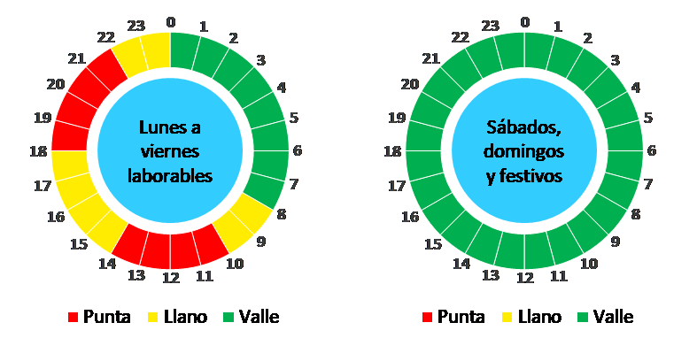 — Hora Punta. Диапазон с наибольшей стоимостью электроэнергии, его время — с 10.00 до 14.00 и с 18.00 до 22.00 с понедельника по пятницу.