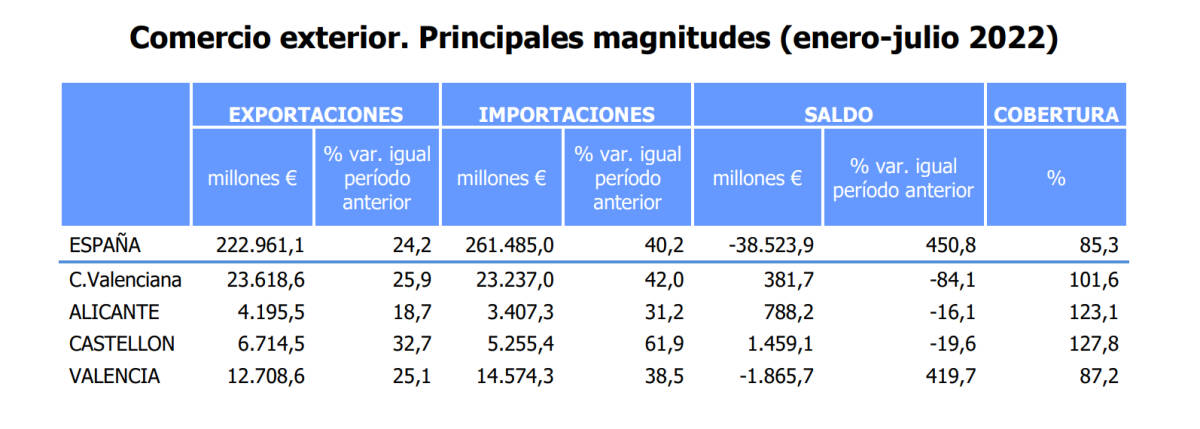 Экспорт товаров и услуг из Валенсийского сообщества продолжает развивается бурными темпами, и показывает рост во всех секторах и превышение среднего показателя по Испании.