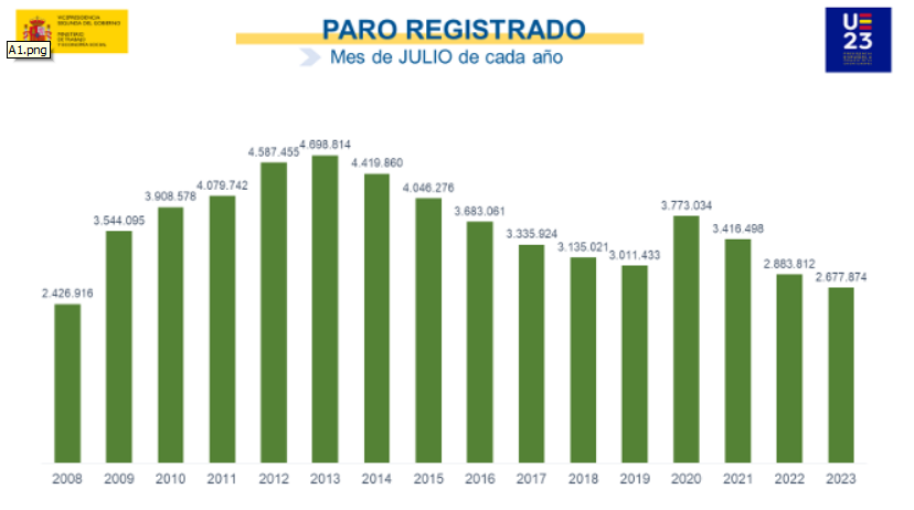 По отношению к июлю 2022 года безработица сократилась на 205.938 человек (- 7,14%).