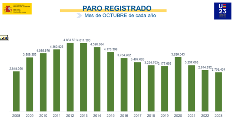 По отношению к октябрю 2022 года безработица сократилась на 155.488 человек (- 5,33%).