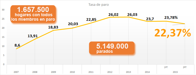 Количество безработных в Испании сократилось на 295 600 человек или на 5,43% во втором квартале 2015 года, по сравнению с предыдущим кварталом, и составило, в общей сложности, 5.149.000 человек. Указанные данные были представлены сегодня Национальным институтом статистики (INE) согласно обследованию экономически активного населения (EPA). Это второй по величине квартальное падение безработицы с 2008 года.