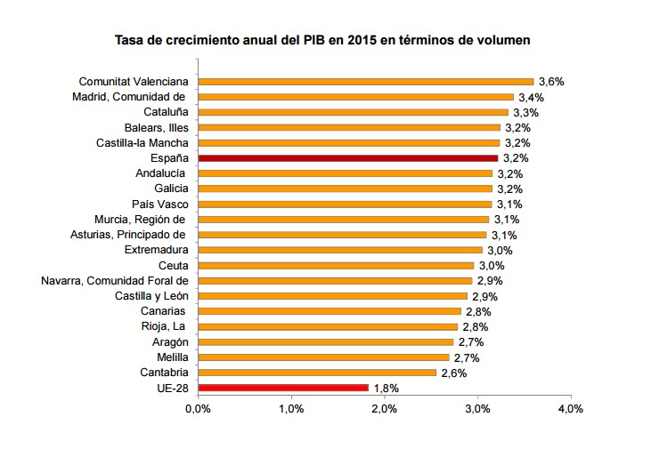 Валенсийская автономия стала в 2015 году самым динамично развивающимся регионом в Испании, согласно данным, опубликованным Национальным институтом статистики.