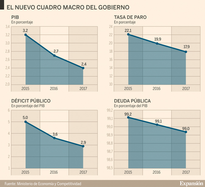 Исполняющий обязанности министра экономики Испании Луис де Гиндос также прогнозирует, что в ближайшие два года Испания может создать 900 тысяч рабочих мест, вследствие чего безработица упадет в 2016-м до 19,9%, а в следующем году – до 17,9%.