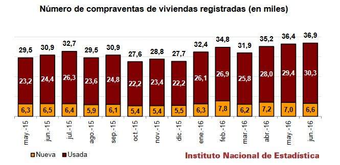 Количество зарегистрированных сделок купли-продажи жилых объектов в Испании в июне 2016 года выросло по сравнению с июнем 2015 года на 19,4% и составило 36.856 операций, согласно данным, опубликованным сегодня Национальным институтом статистики (INE).
