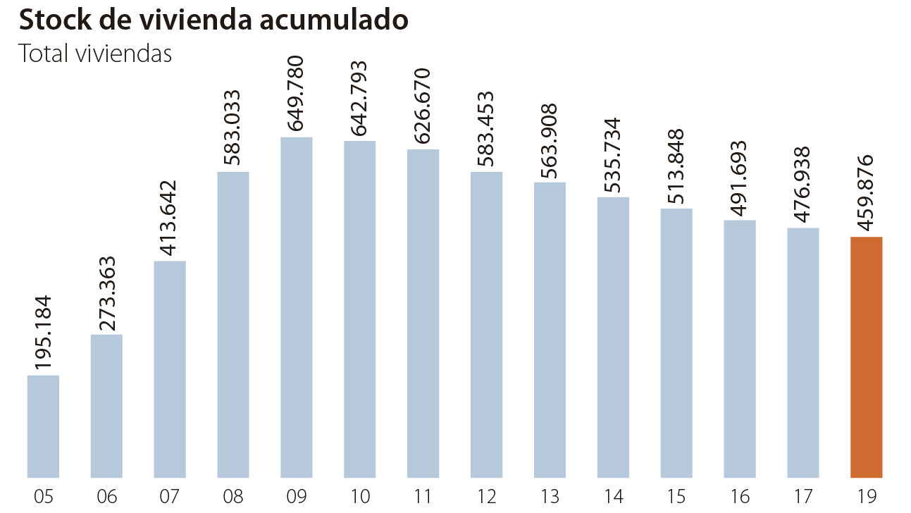 Сокращение числа новых непроданных домов происходит восемь последних лет, начиная с 2010 года, а в процентном выражении самое высокое поглощение было в 2012 году с 6,9%. Кроме того, по сравнению с максимумом, зарегистрированным в 2009 году, с 649.780 объектами, избыток нового жилья сократился примерно на 29%.