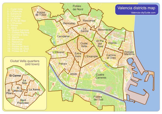 В городе Валенсия аренда жилья с наиболее высоким ценовым диапазоном расположена в Ciutat Vella, L'Eixample, Poblats Marítims, рядом с Cabanyal, Extramurs и Campanar.