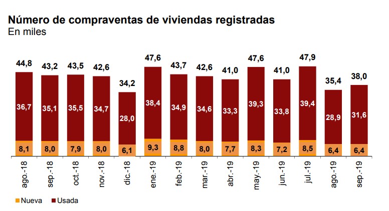 Вступление в силу нового Закона об ипотеке и политическая нестабильность оказывают отрицательное влияние на развитие рынка жилья Испании. Количество сделок купли-продажи жилых объектов в Испании, зарегистрированных в Реестре прав собственности, в сентябре 2019 года снизилось по сравнению с сентябрём 2018 года на 12% и составило 37.995 операций, согласно данным, опубликованным сегодня Национальным институтом статистики (INE).