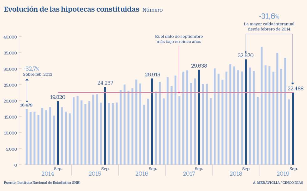 С момента вступления в силу Закона о кредитовании недвижимости в середине июня текущего года рынок ипотечного кредитования продолжает фиксировать обвальные показатели. Так в сентябре 2019 года было заключено только 22.488 новых займов на приобретения жилья, что на 31,6% меньше, чем в тот же период прошлого года, что является худшим сентябрём для ипотечного рынка с 2014 года, согласно данным, опубликованным сегодня Национальным институтом статистики (INE).