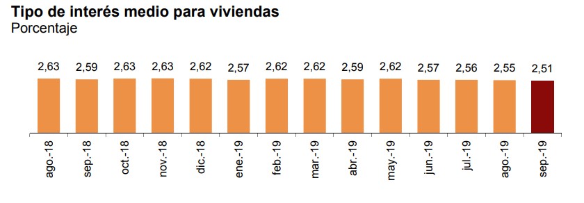 В абсолютных величинах лидерами по числу ипотечных займов в сентябре 2019 года являются Мадрид (4.708 операций на общую сумму €936,8 млн.), Андалусия (4.189, €463,6 млн.), Каталония (3.665, €544,6 млн.) и Валенсийское сообщество (2.671, €255,4 млн.).