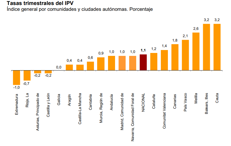 Среди автономий наибольший рост цен на жильё в годовом выражении зафиксирован на Балеарских островах (3,4%), Мурсия (3,0%) и Астурия (2,7%).