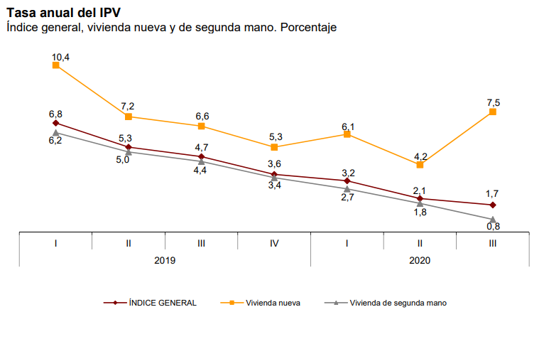 С другой стороны, в третьем квартале 2020 года в 4 автономных сообществах произошло снижение цен по сравнению с предыдущим кварталом. Наибольшее падение было зафиксировано в Эстремадуре (-1%), Ла Риоха (- 0,7%). Наибольшая положительная динамика роста цен наблюдалась на Балеарских островах (+3,2%) и в Стране Басков (+2,1%).