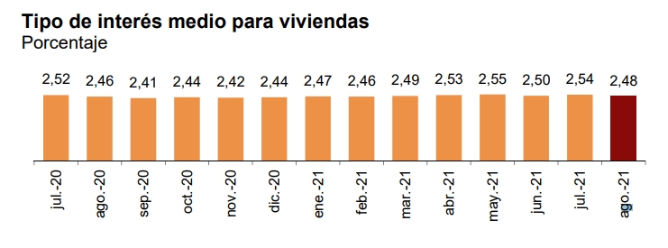 33,0% ипотечных кредитов на жильё было выдано под плавающий процент (tipo variable), который зависит от европейской межбанковской ставки предложения (Euribor), и 67,0% - под фиксированный (tipo fijo).