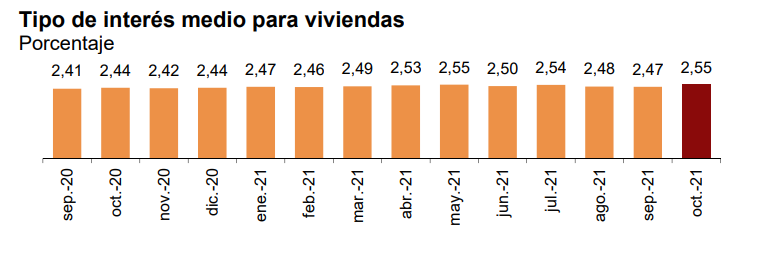 32,8% ипотечных кредитов на жильё было выдано под плавающий процент (tipo variable), который зависит от европейской межбанковской ставки предложения (Euribor), и 67,2% - под фиксированный (tipo fijo).