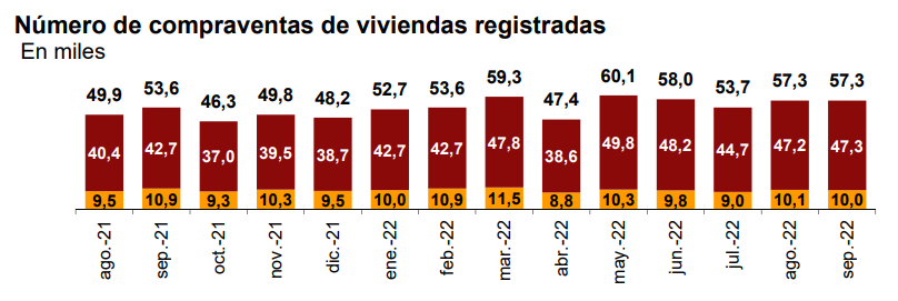 На рынок вторичного жилья пришлось 82,5% от общего числа сделок купли-продажи сентября 2022 года, где было продано 47.279 объектов. Годовой рост этого сегмента составило 10,7%. С другой стороны, продажи новостроек снизились на 7,8%, до 10.054 операции.