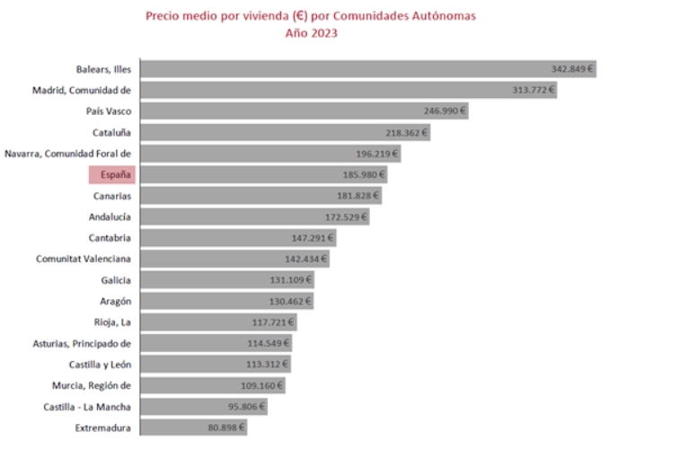 По территории регистраторы видят «заметные» различия как в цене за квадратный метр, так и в средней цены передаваемой площади. Так, выделяются Балеарские острова и Мадридское сообщество, где стоимость составила выше 300 000 евро за операцию, что контрастирует с ценами Кастилии-Ла Манчи и Эстремадуры - ниже 100.000 евро.
