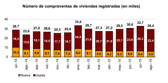В августе 2015 года в Испании было продано 29.396 объектов жилой недвижимости, в том числе новострой – 5.941 и вторичное жильё – 23.428, согласно данным Национального института статистики (INE). По сравнению с августом 2014 года этот показатель вырос на 24,2%.