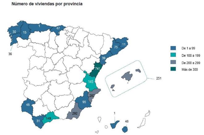 Дома и квартиры расположены в девяти разных регионах Испании, в том числе 1.168 – в Валенсии. На побережье Средиземного моря есть объекты в Каталонии, на Балеарских островах, в Мурсии и Андалусии. На Канарских островах выставлено на продажу 49 единиц жилья, в Галисии, Астурии и Кантабрии – еще 129.
