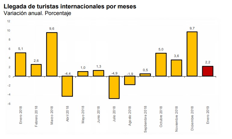 В первый месяц 2019 года в Испании побывало рекордное для этого месяца 4,197 миллиона иностранных туристов, и это на 90 тысяч (2,2%) больше, чем за первый месяц предыдущего года. Такие данные привёл сегодня Национальный Институт статистики (INE), в соответствии с обследования туристских перемещений в границах (Frontur).