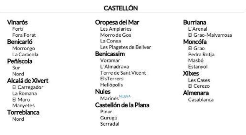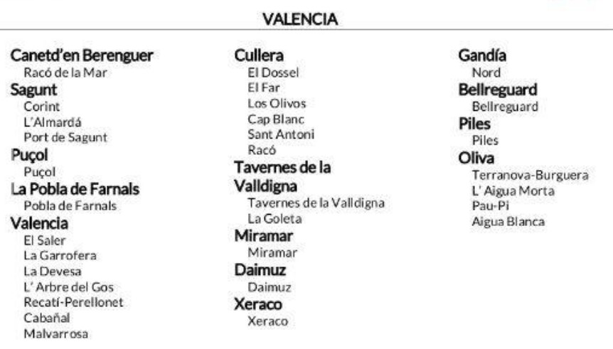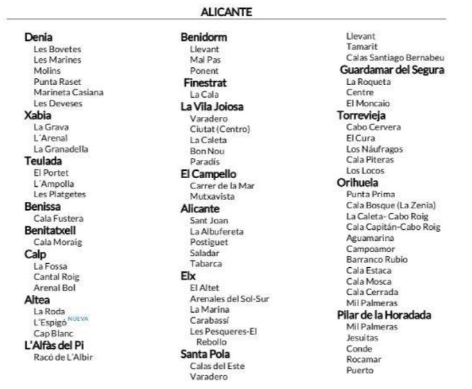 Ниже представлен полный перечень пляжей Валенсийского Сообщества, имеющих Голубые флаги.