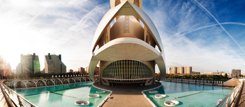 Город Науки и Искусств - целый огромный городок, посвященный науке и искусству поражает воображение своими масштабами и космическими очертаниями. Общая площадь города науки и искусства составляет 350 тысяч квадратных метров. Комплекс включает в себя Полусферу — здание, объединившее в себе планетарий и стереокинотеатр — музей науки, гигантскую оранжерею, дворец искусств, а также океанариум, где проводятся самые масштабные шоу дельфинов в мире! Окружающий их водоем отражает в своих водах сферические здания, благодаря чему они выглядят еще масштабнее. Ну а если зайти внутрь всех зданий, входящих в комплекс города науки и искусства, то можно потеряться там на целый день!