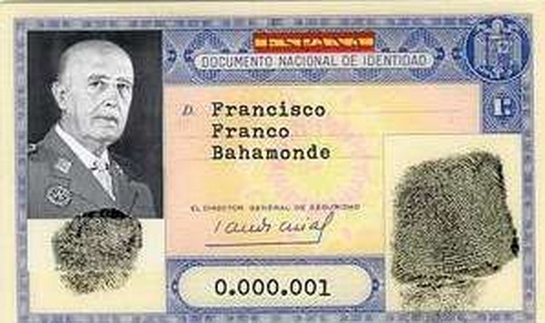Идея появления национального удостоверения личности (Documento Nacional de Identidad или DNI) принадлежит Франсиско Франко, который декретом от 2 марта 1944 года инициировал создать для испанцев общий идентификационный документ.