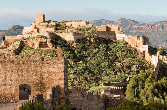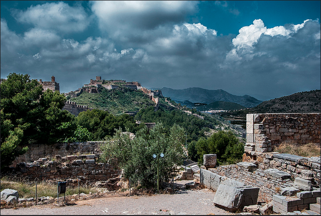 Самый яркий объект города – огромная древняя крепость, состоящая из участков, построенных в разные времена. Сегодня она делится на две основные части: Альменара и Алькасаба. Первые стены крепости возводили иберы. Римляне восстановили строения, разрушенные Ганнибалом, заложили площадь Santa Maria Magdalena, построили форум, прорубили колодец в скале. С 1931 года комплекс Castillo Sagunto внесен в реестр национальных памятников.